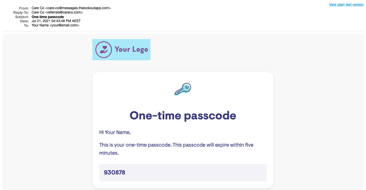 This layer of security protects the private and confidential information being shared in the referral. Once requested, the one-time passcode is sent to their email and will allow them to open the referral: