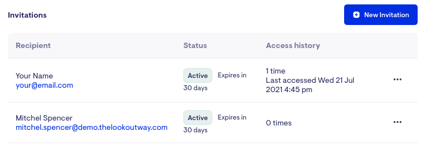 Invitations automatically expire after 30 days to prevent your client's sensitive information from living on in people's inboxes forever. Additionally, you can revoke an invitation at any time.