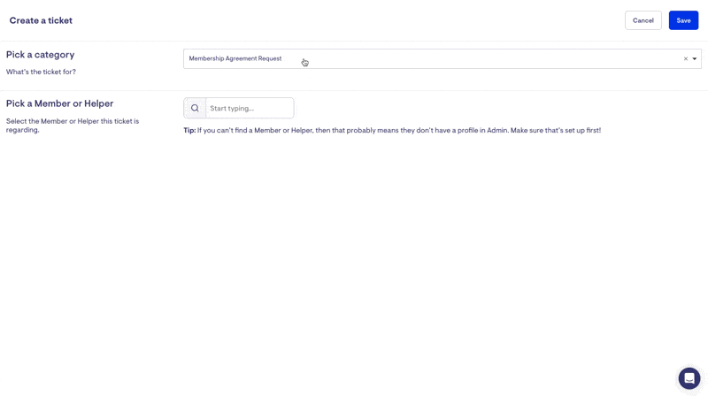 Select the Member this ticket is regarding