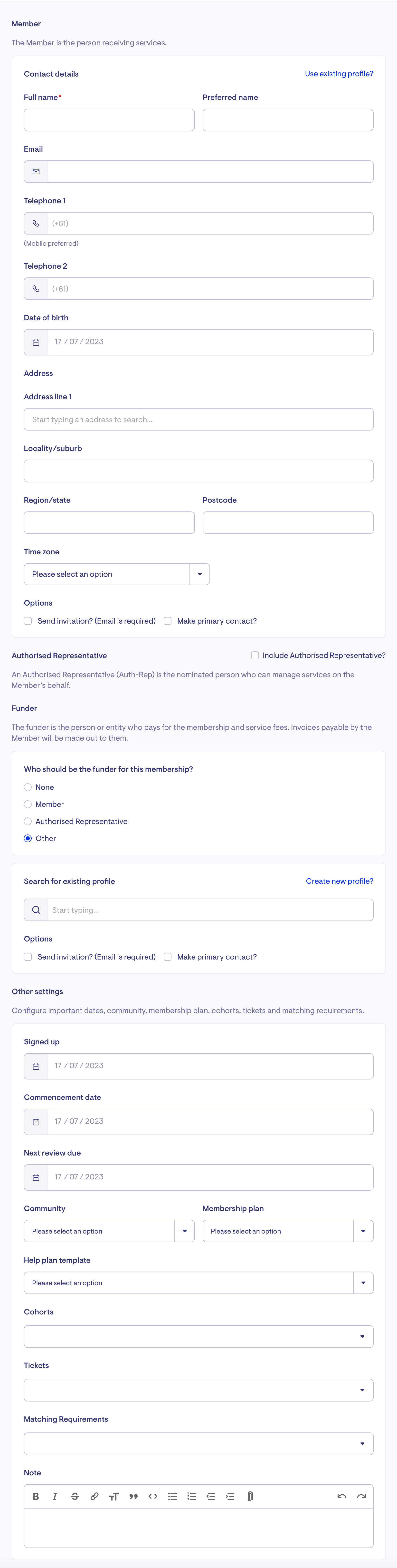 Important Note: It's not recommended to proceed with this method if you're changing the funder because the funding scheme has changed, and the membership is set up under the Home Care Package (HCP) or Commonwealth Home Support Program (CHSP). Instead, we recommend creating a new membership when a client switches between CHSP and HCP funding or vice versa and archiving the old one.