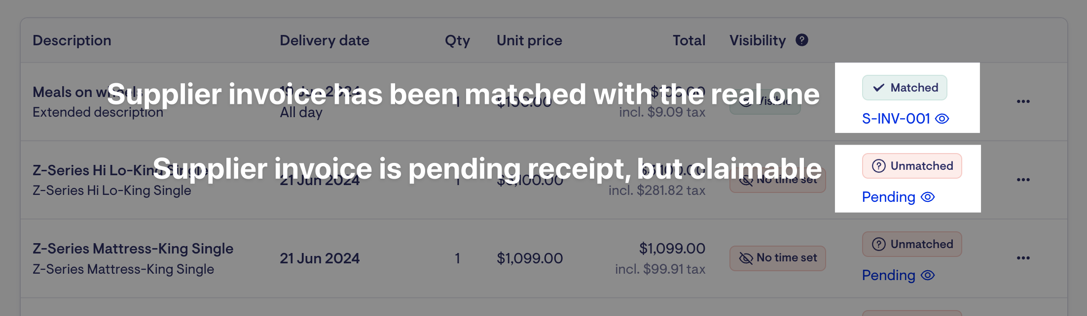Any purchase order item with an estimated delivery date within the billing run window will have a pending supplier invoice created for it automatically. This means care is claimed for by default without additional workload