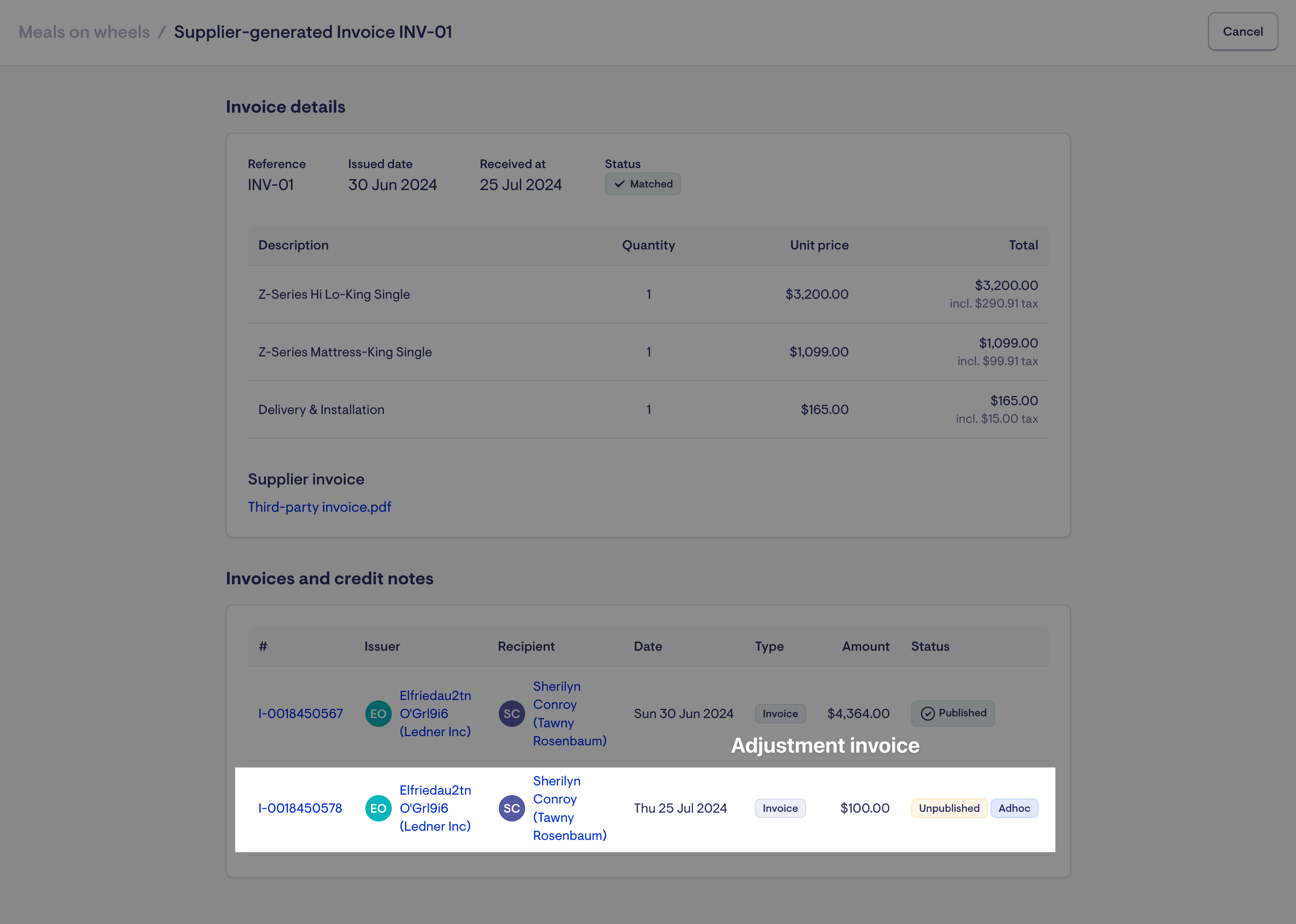 Edit the supplier generated invoice