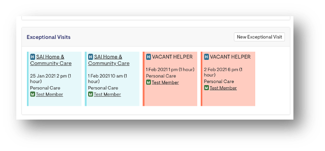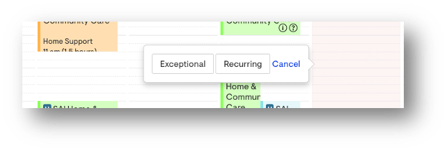 Click to create new Recurring Visit or Exceptional Visit from right-hand column