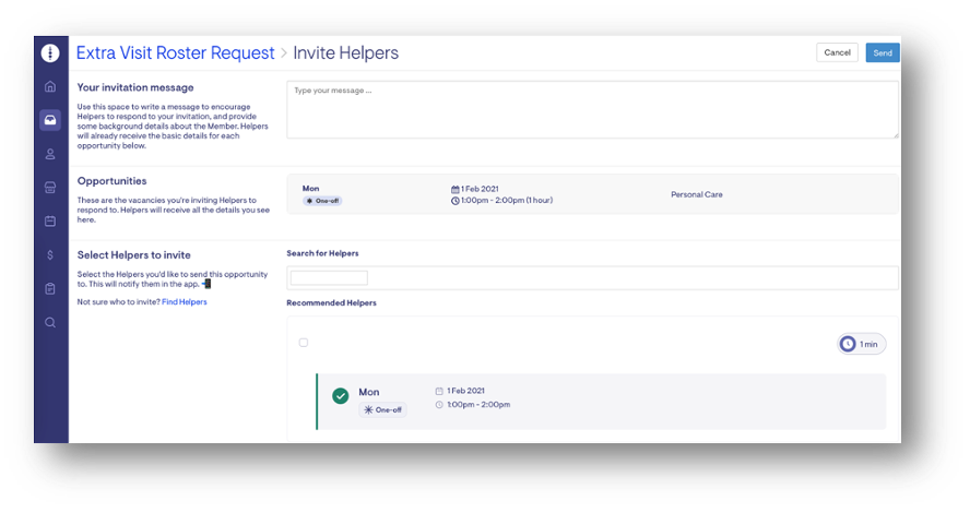 Search for who you wish to invite or refer to ‘Recommended Helpers’ which are those the system has identified as possible options.