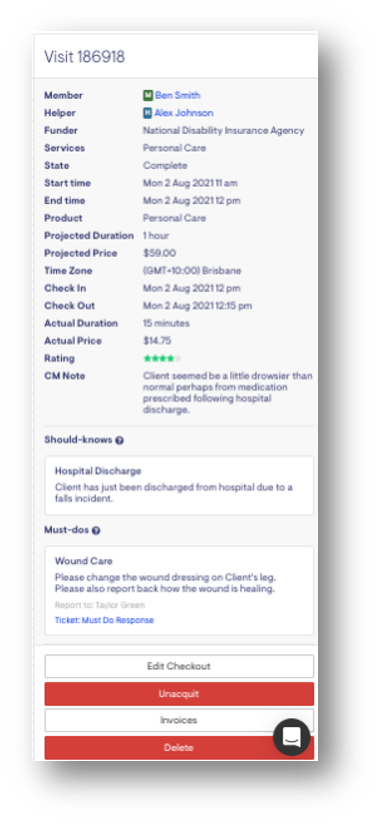 If you ever need to edit or cancel a visit after it has been checked-in or out of, you will firstly need to ‘un-acquit’ the visit first and then edit accordingly.
