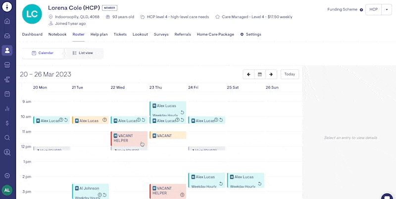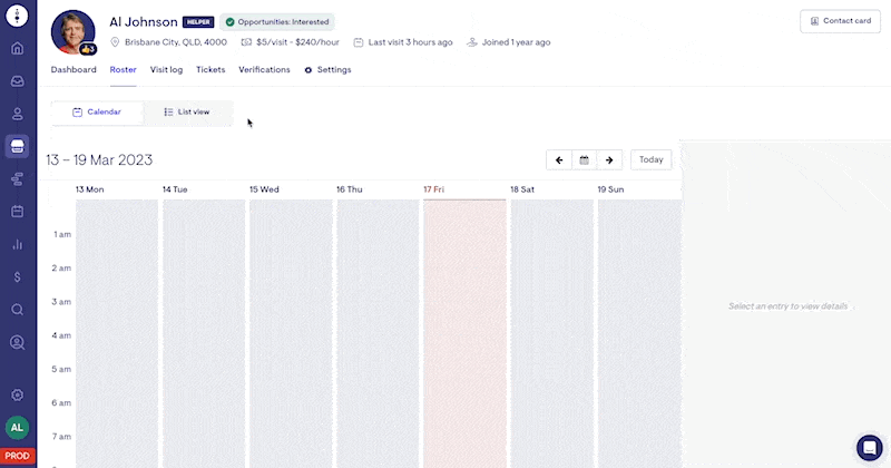When viewing a roster, either in a Client Profile or Care Worker Profile, there are a number of considerations including: