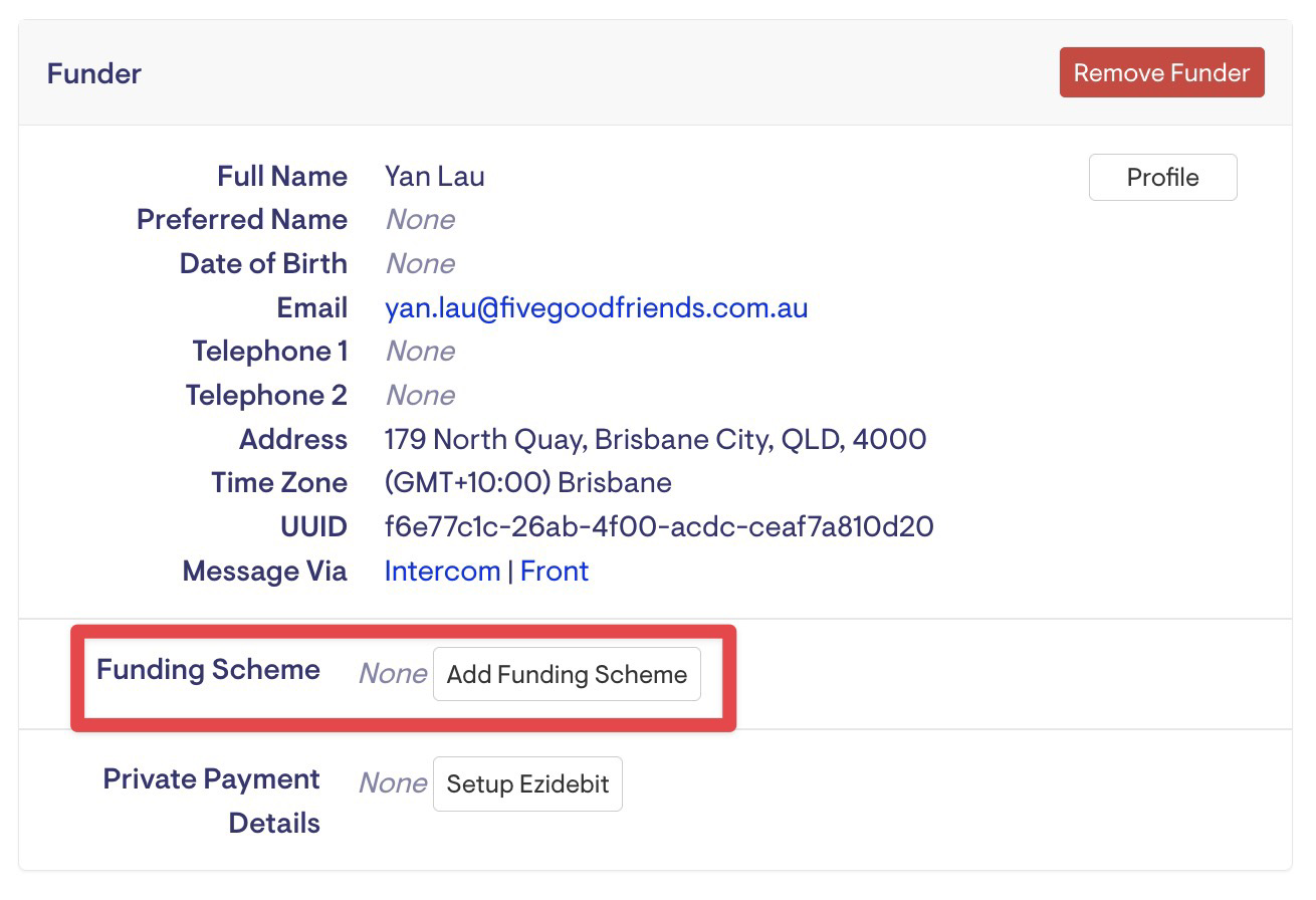 To add a funding scheme to a membership, click "Add Funding Scheme" under the "Funder" section of the membership dashboard.