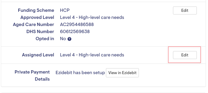 Note: The effective date for the assigned package level is not linked to the membership commencement date. The membership commencement date is when the client started with your care organisation. In contrast, the effective date for the assigned package level is when the client started on that particular home care package level.