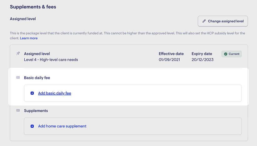 This account is where the Basic Daily fee (BDF) gets recorded, if applicable. The BDF refers to a home care fee that a care recipient may be asked to pay by a home care provider based on their package level (separate from the Government subsidy).