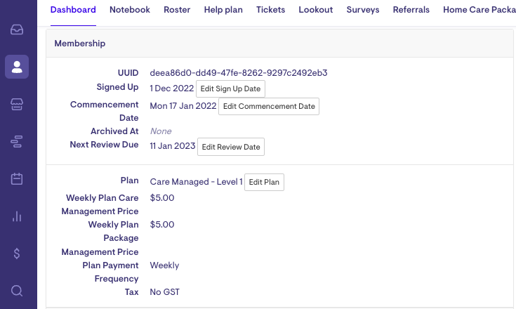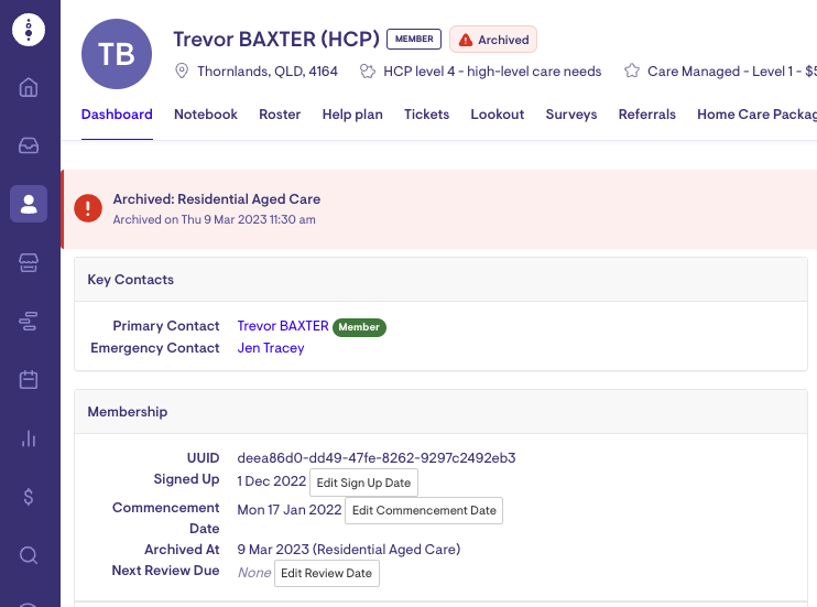Once the membership has been archived, Lookout will no longer generate care and package management fees.