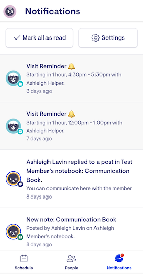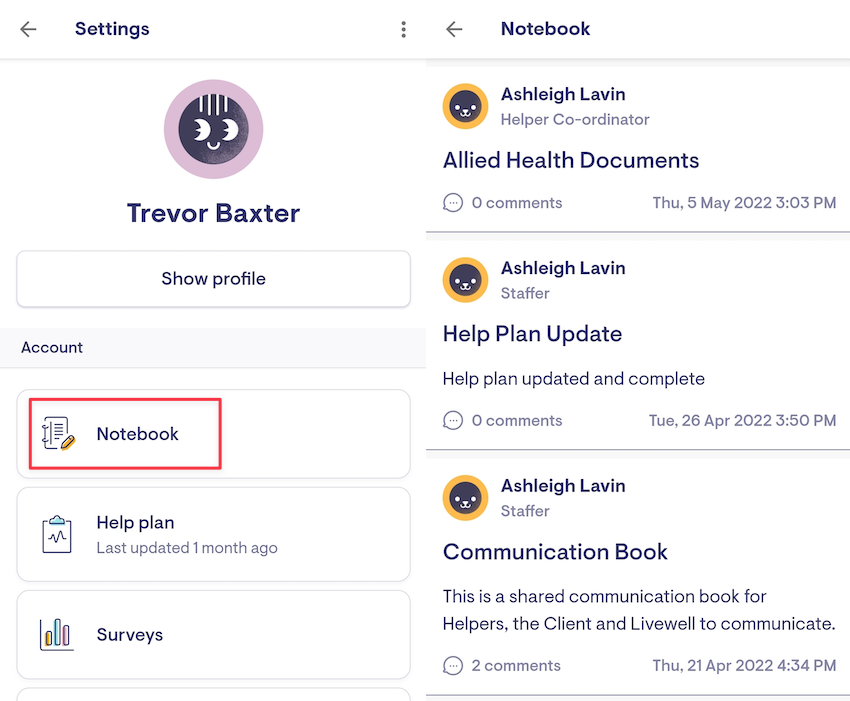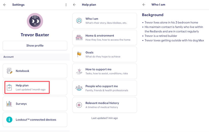 Enables a Member, Authorised Representative or Sharer to keep in touch with anyone in the care team, including Helpers and Care Managers, through the notebook functionality.