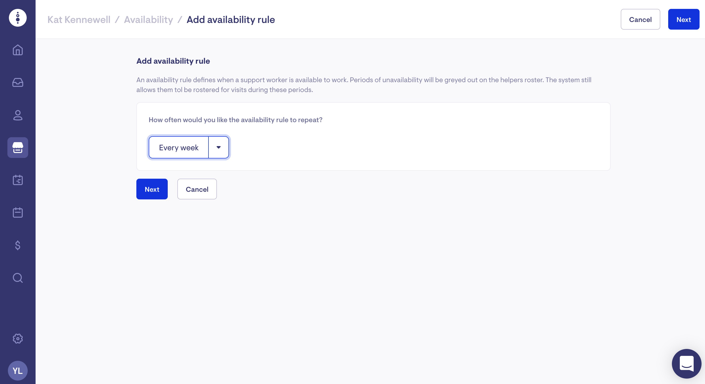Note: This only applies to support workers with the engagement type of employee. Contractor support workers need to set their availability. See here.