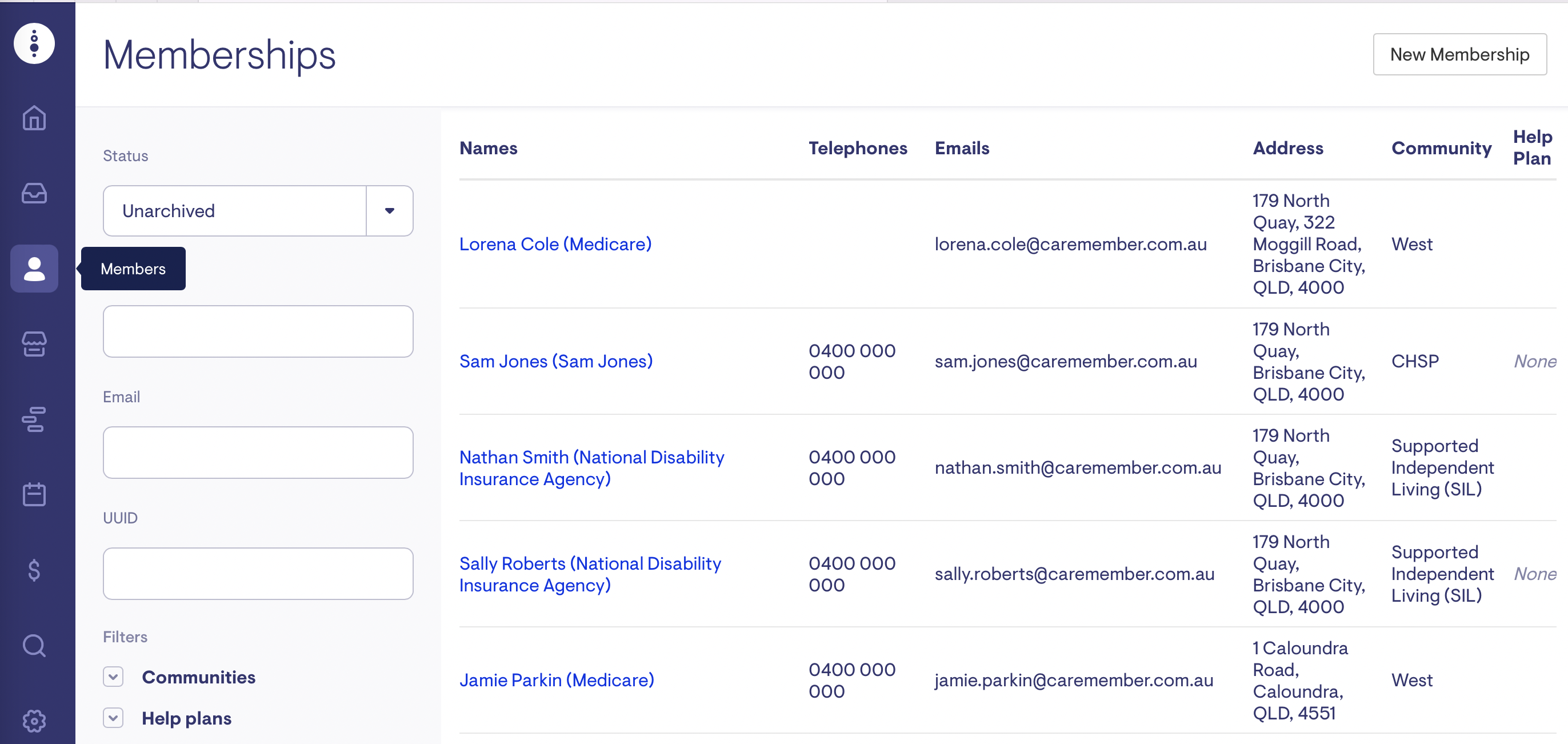 The Membership is the place to find, manage and share details about the Member receiving care, such as the Notebook, Roster, Help Plan and Remote Care Monitoring (Lookout)