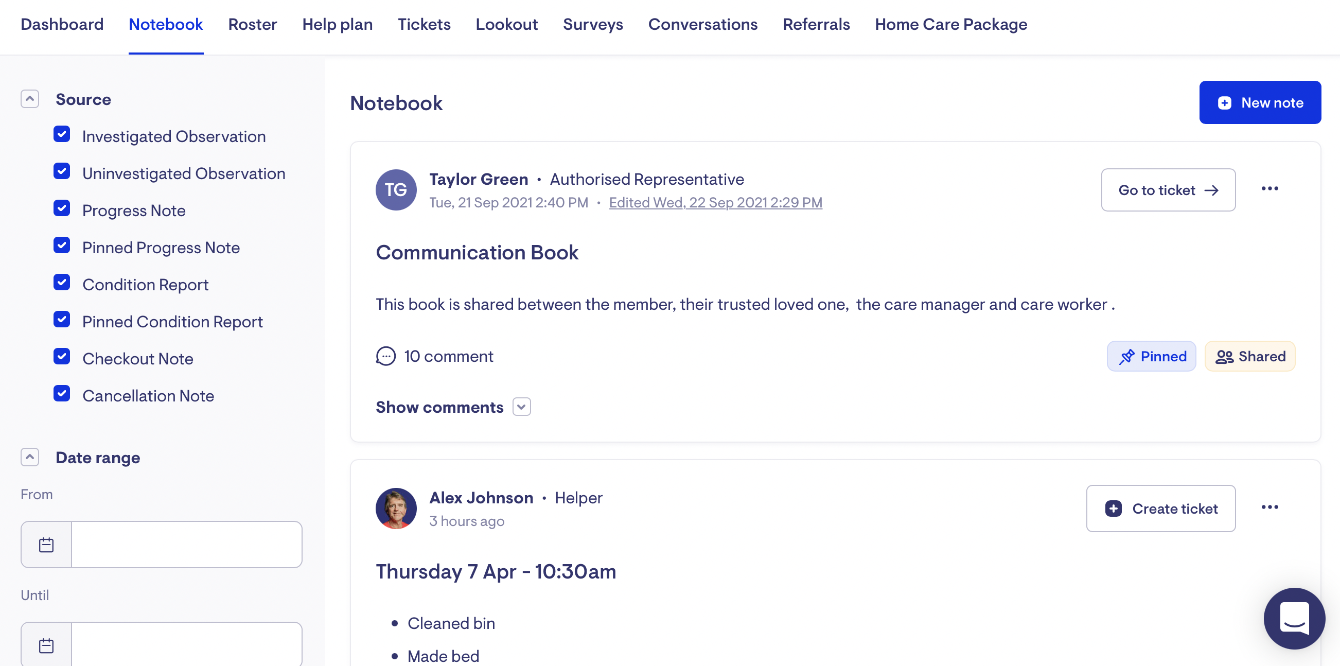 The shared notebook has been designed to keep Members, their loved ones, and care teams synchronised to feel calm and reassured their care needs and expectations are being met.