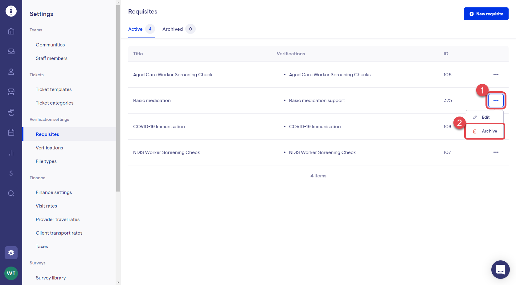 Select the more options menu (▪▪▪) next to the desired verification and then select Archive.