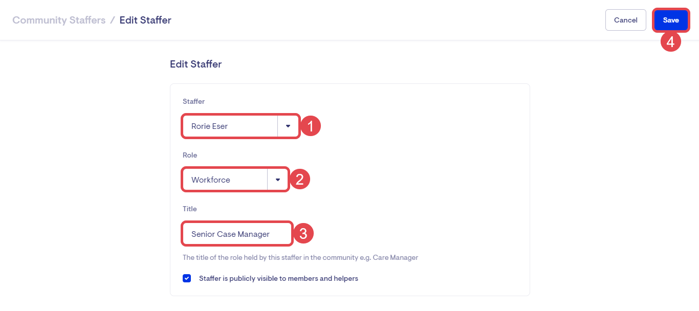 Note: The same process can be followed when adding a Staffer to a Community by selecting 'New staff member'.