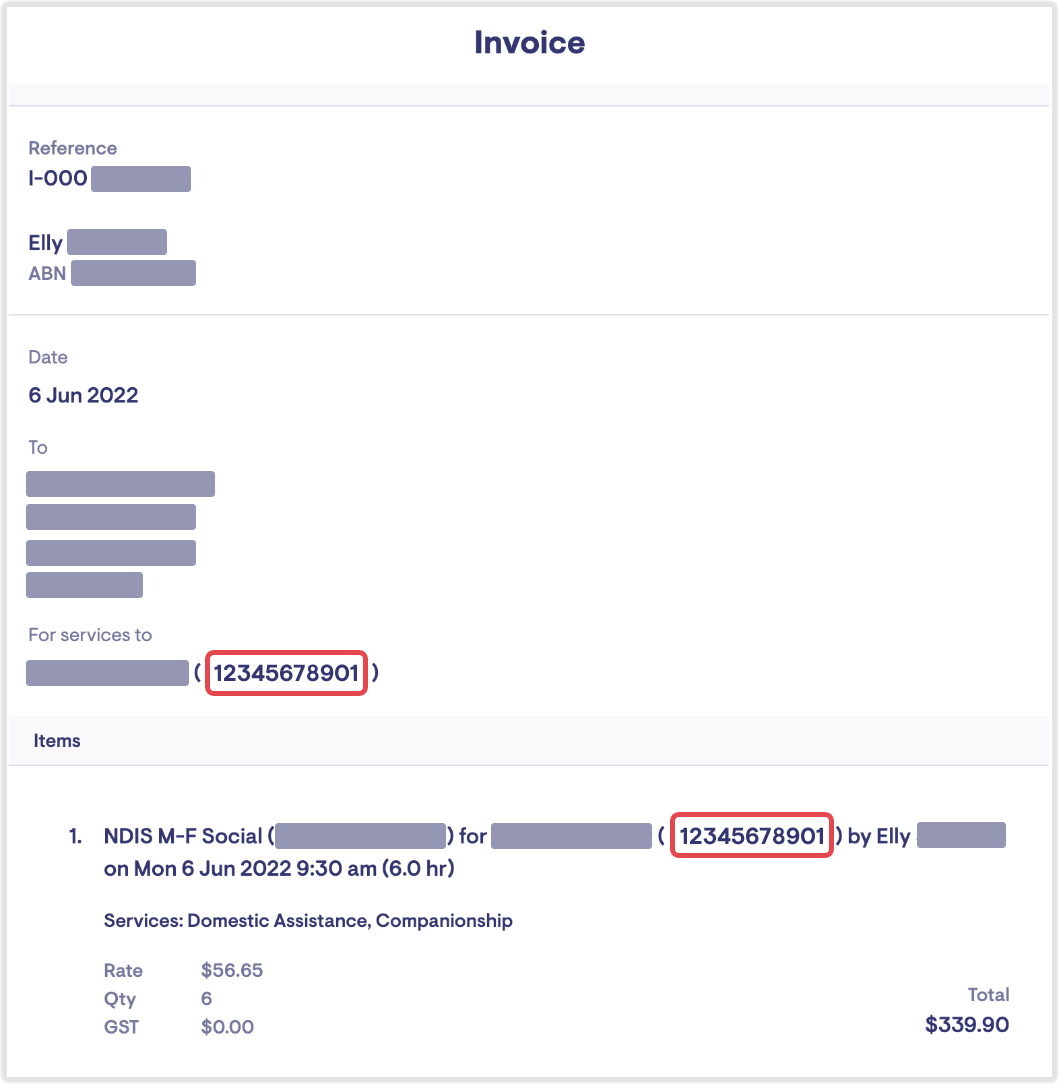 A member's NDIS number now appears next to their name on invoices. The membership itemised report has also been updated to include the NDIS number.