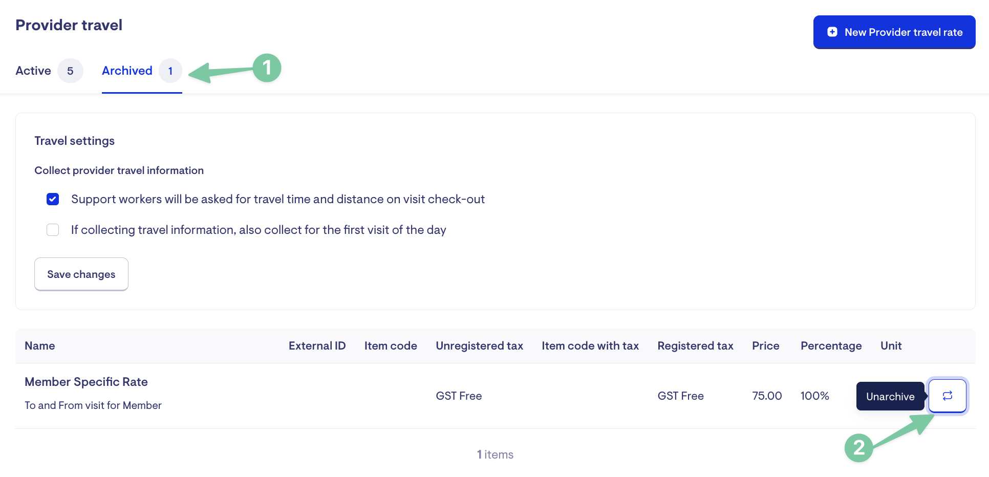 Select the 'Collect provider travel information' checkbox from the Provider travel rates screen and Save changes.
