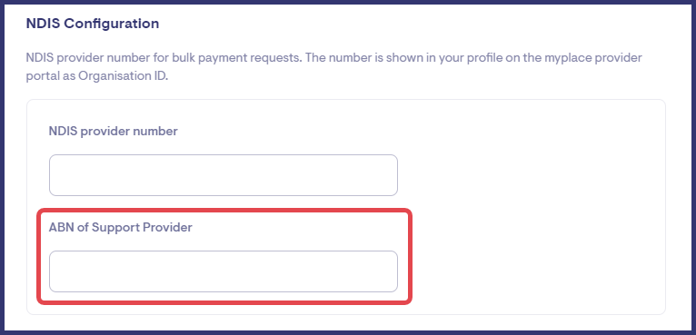 Included the ability to add the Support Provider ABN under the NDIS Configuration settings. This will now also be displayed in a new column in the NDIS Bulk Payment Export Report for NDIS providers that need to report their ABN when submitting bulk payments.