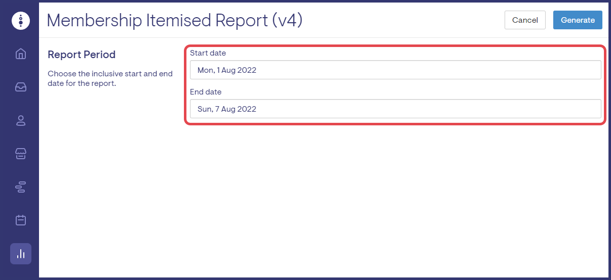 Version 4 of the report now includes the option to select a start and end date. Select your date range and then select Generate.
