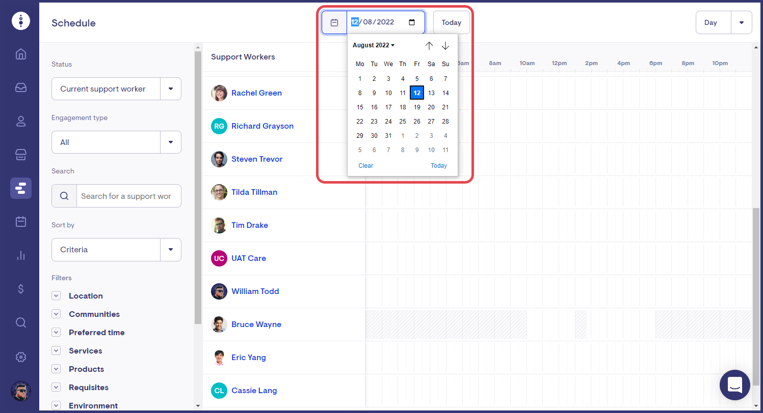 Included a new date picker to the scheduling page to assist in quickly selecting a date when rostering visits.