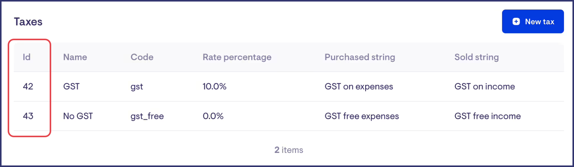 You are now able to easily access the ID of the tax option when building your invoice CSV imports.