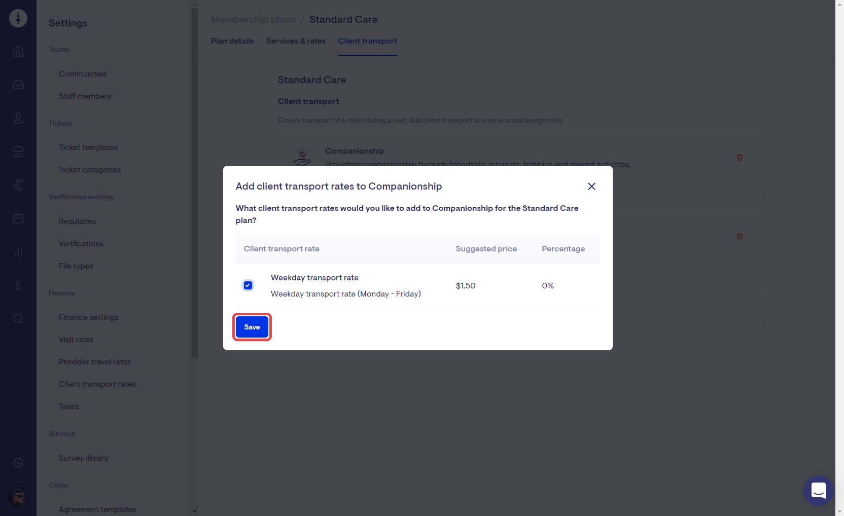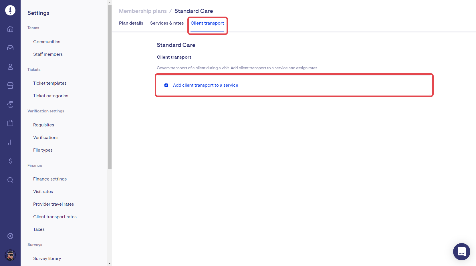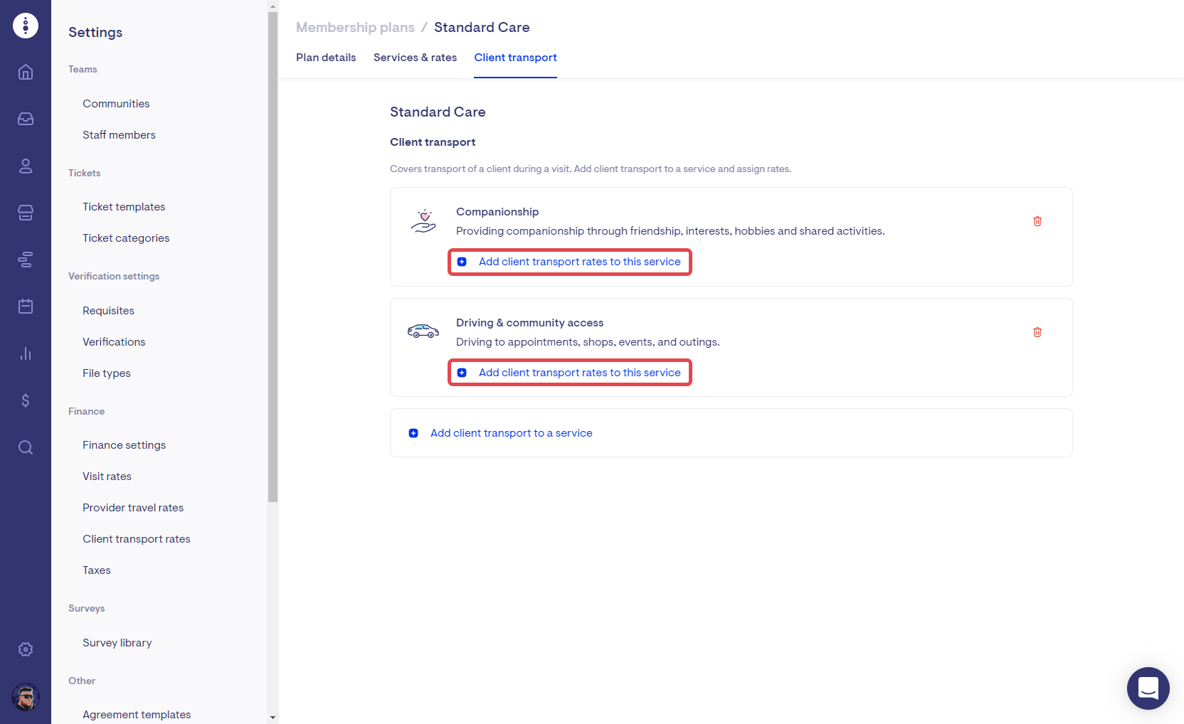 Once you have the membership plans set up (you can use one for all members if that suits your organisation), refer to the steps outlined above to set up provider travel and/or client transport on the membership plan.