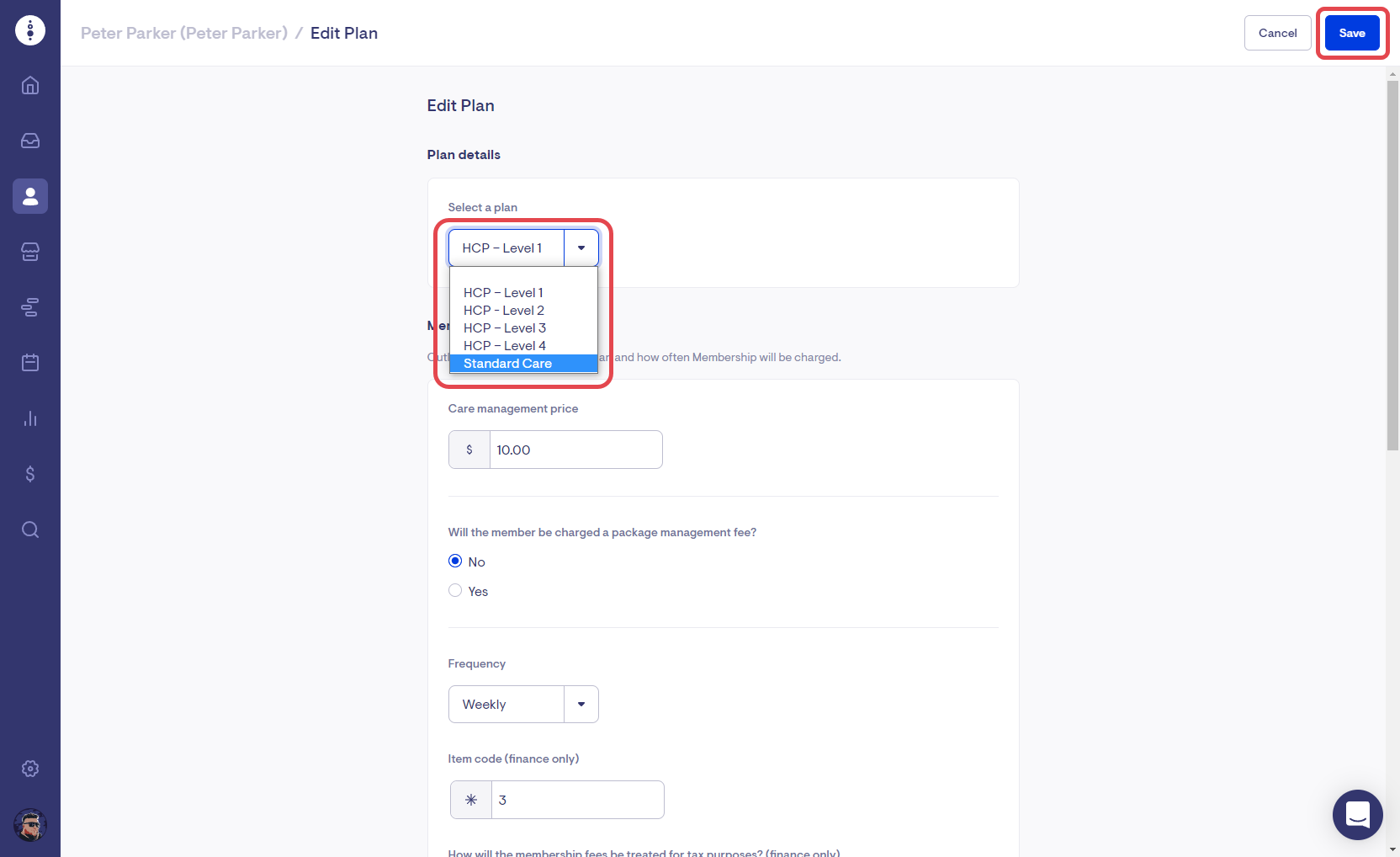 On the Edit Plan screen, select the relevant plan from the Plan details drop down list and then select Save.