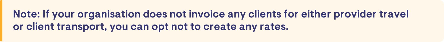 💬 Note: by selecting a client transport rate, workers will be asked to enter client transport information at check-out. If you choose not to charge for client transport for the visit, workers will not be asked for client transport information at check-out.