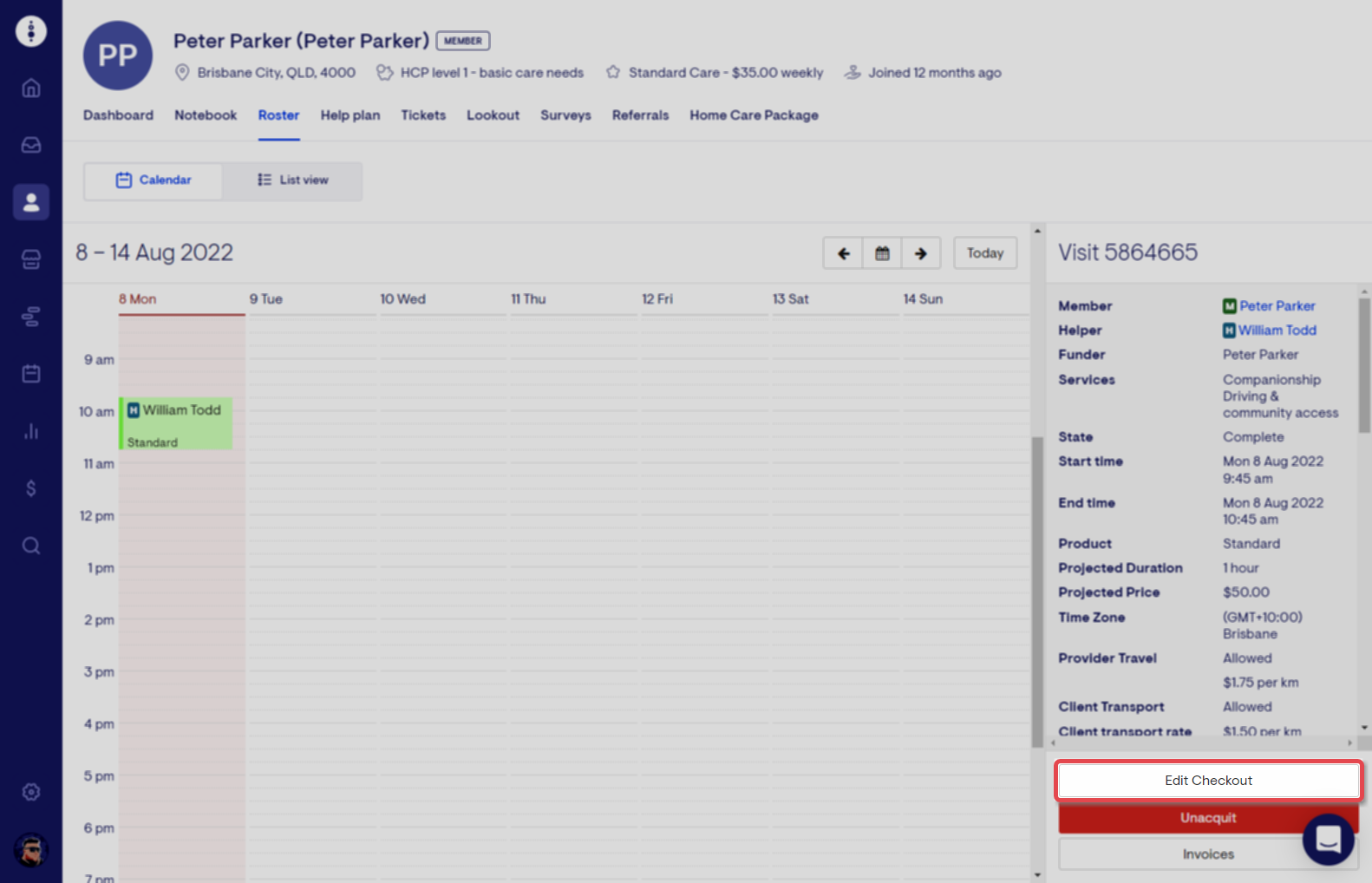You can also edit check-outs from the Punchcards screen which can be assessed via the rostering tab on the sidebar.