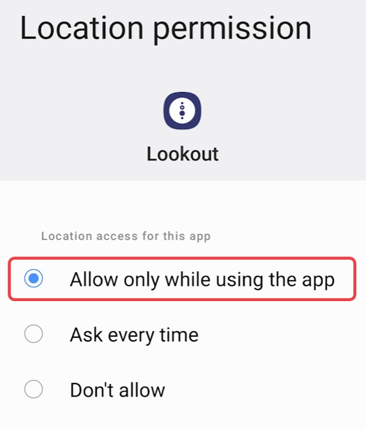 I don't see the option to enable location services for the Lookout app.