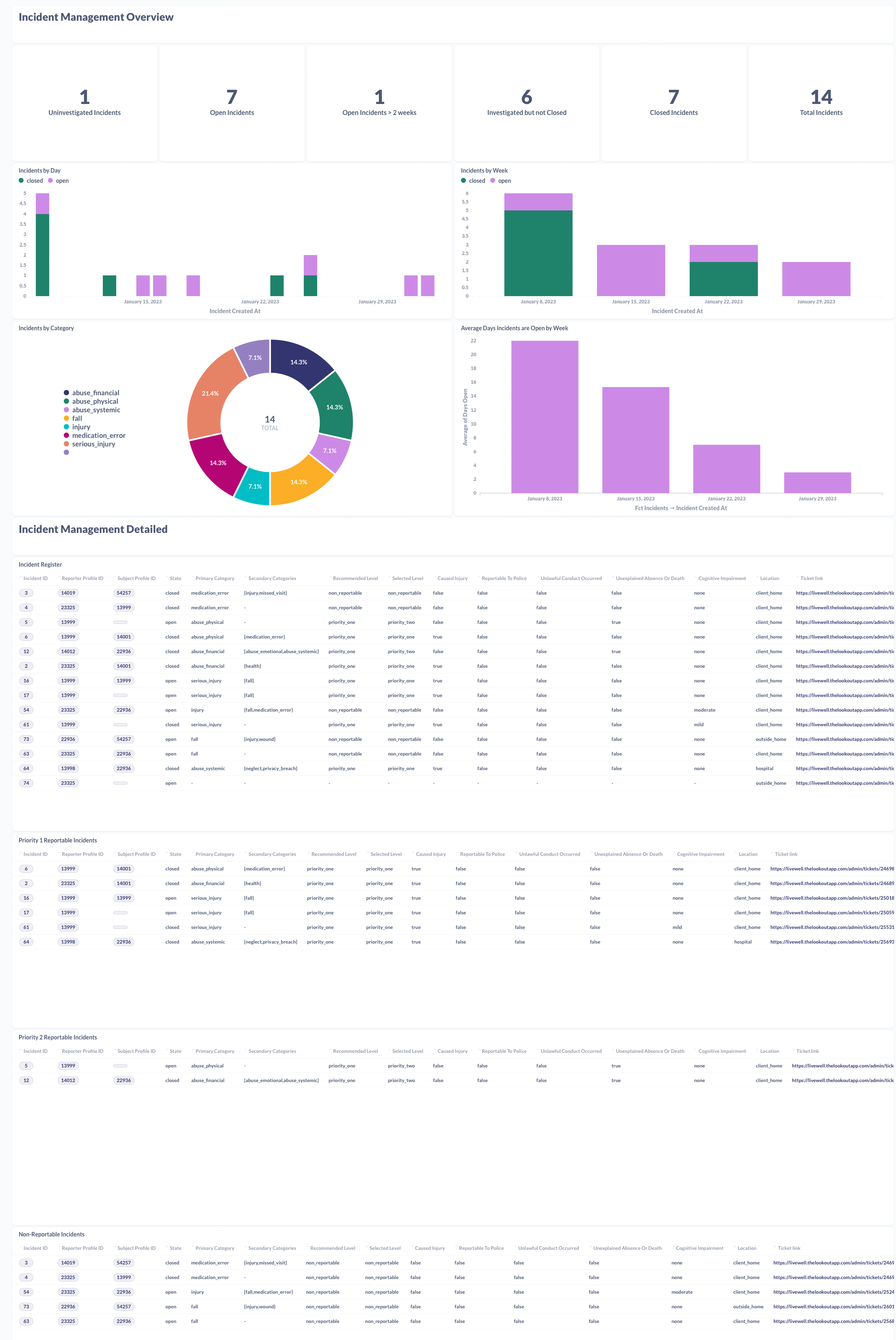 Lookouts IMS provides the ability to effectively identify, respond to, and mitigate the impact of an incident and enables providers to analyse and identify risks and trends to inform preventative measures.