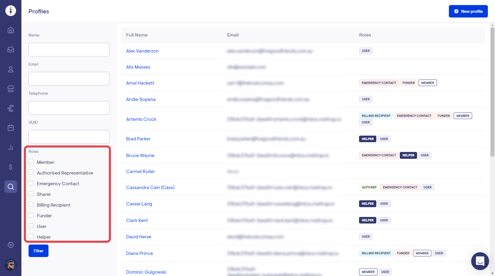 When performing a profile search, you now have the option to filter the results for specific roles such as Member, User and Emergency Contact.
