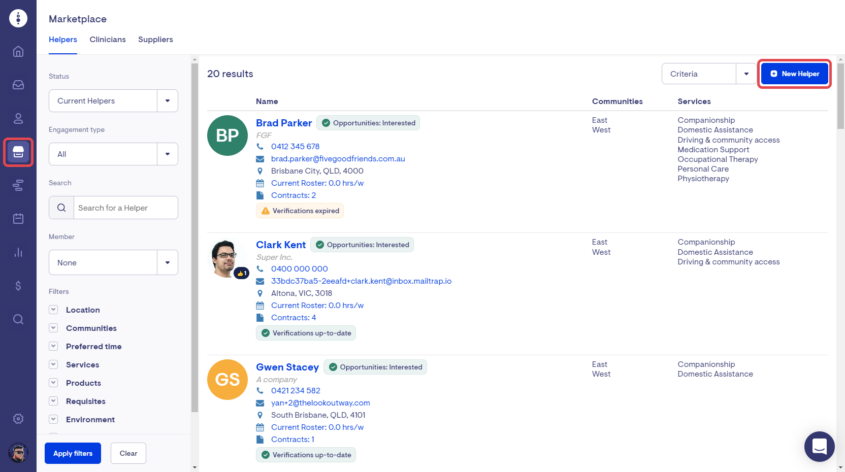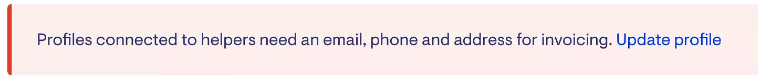 Note: Profiles need to have an email, phone number and valid address before you can create a helper from the profile. If any of these details are missing you will be prompted to update the profile before continuing to create a new helper.