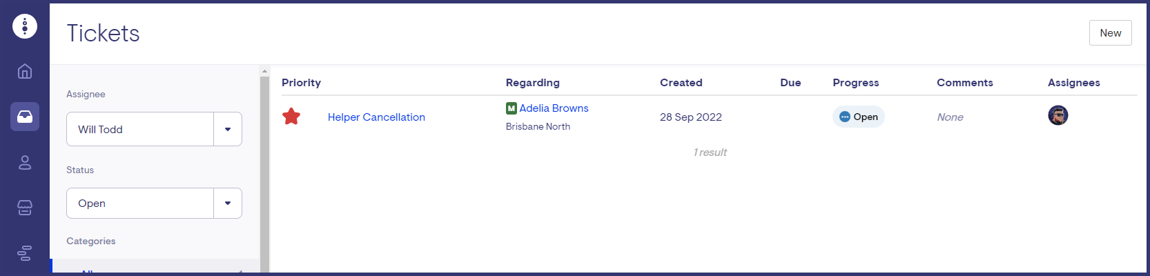 A notification in the form of a ticket is now triggered if a visit is cancelled and has a helper related cancellation reason. This helps rostering teams keep track of cancellations and assists them in allocating a replacement support worker.