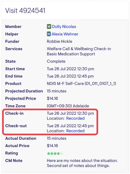 Title of the helper's visit with the member (this will open the full visit details).