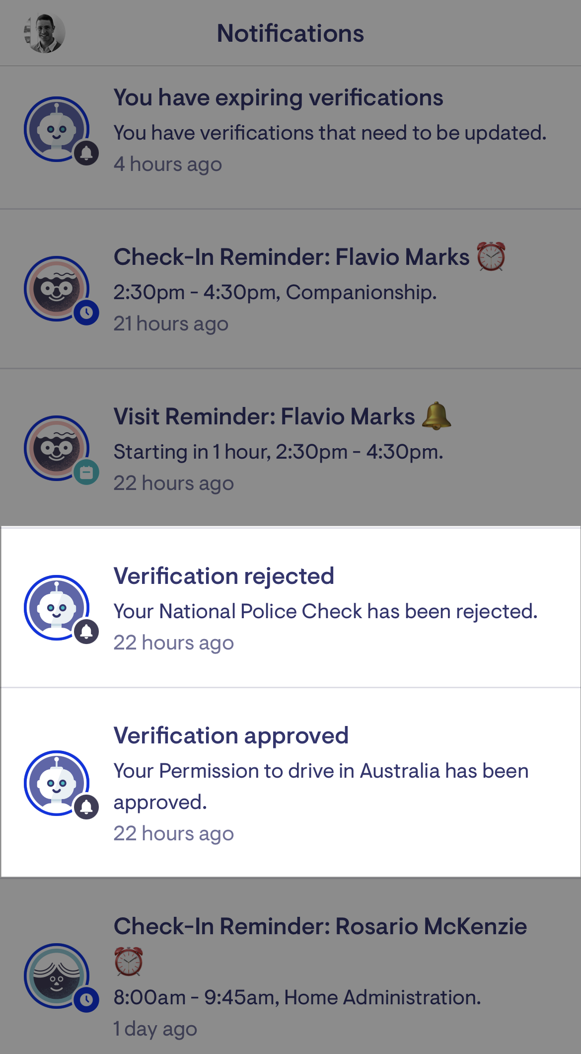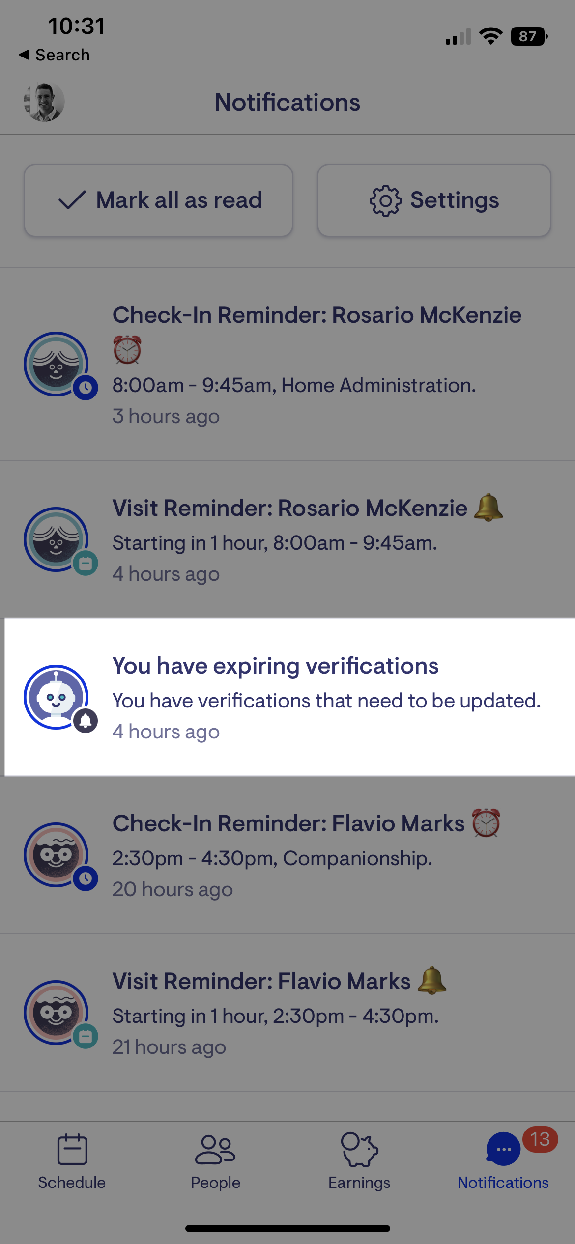 Expiring Verifications can also be accessed from a new section within the Lookout App or care website.