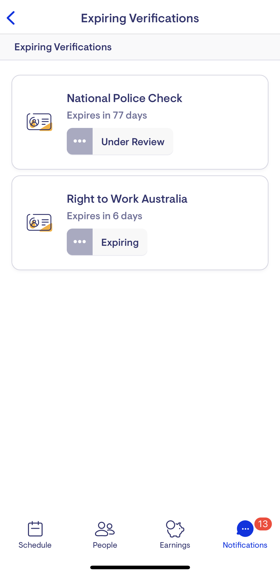 Each day at 7:00 am (AEST), Lookout checks for Verifications that expire in 90 days and rolls them up for each Helper.