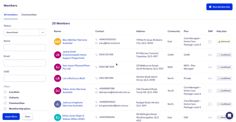 To support clients with more than one funding scheme, Lookout allows you to create multiple Memberships. For example, a client may receive services funded by a Home Care Package (HCP), Commonwealth Home Support Programme (CHSP), and by paying privately. Lookout automatically links the Memberships and aggregates the visits on the clients' rosters, so you have full visibility of the clients' schedules at all times.