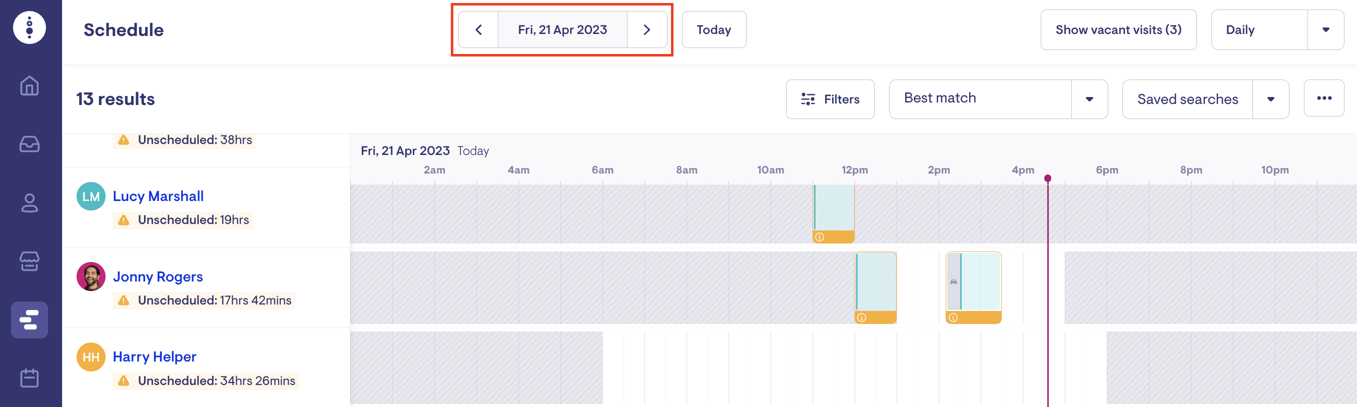 Filtering visit status and unavailability on the schedule has been made easier. These filters are now applicable to the Detail, Daily, Weekly, Condensed, and Calendar views, as well as the fill-vacant visit view.