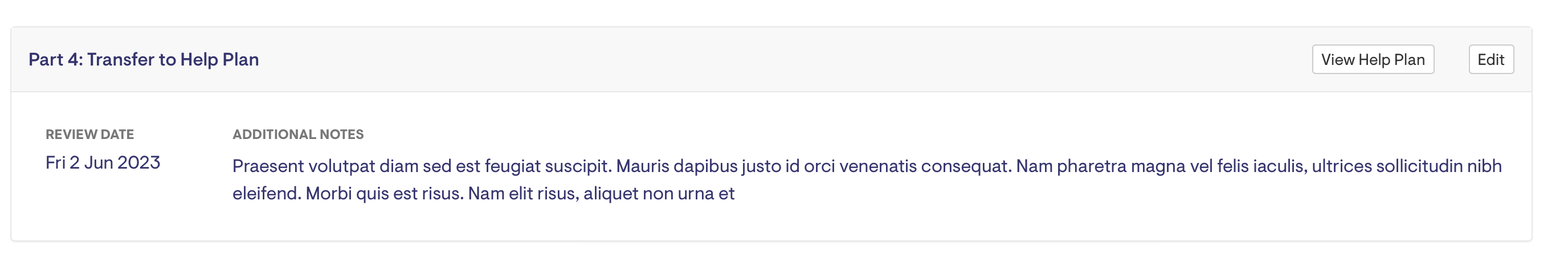 The 'View Help Plan' and 'Edit' buttons will appear once the assessment results have been linked to the Help Plan.