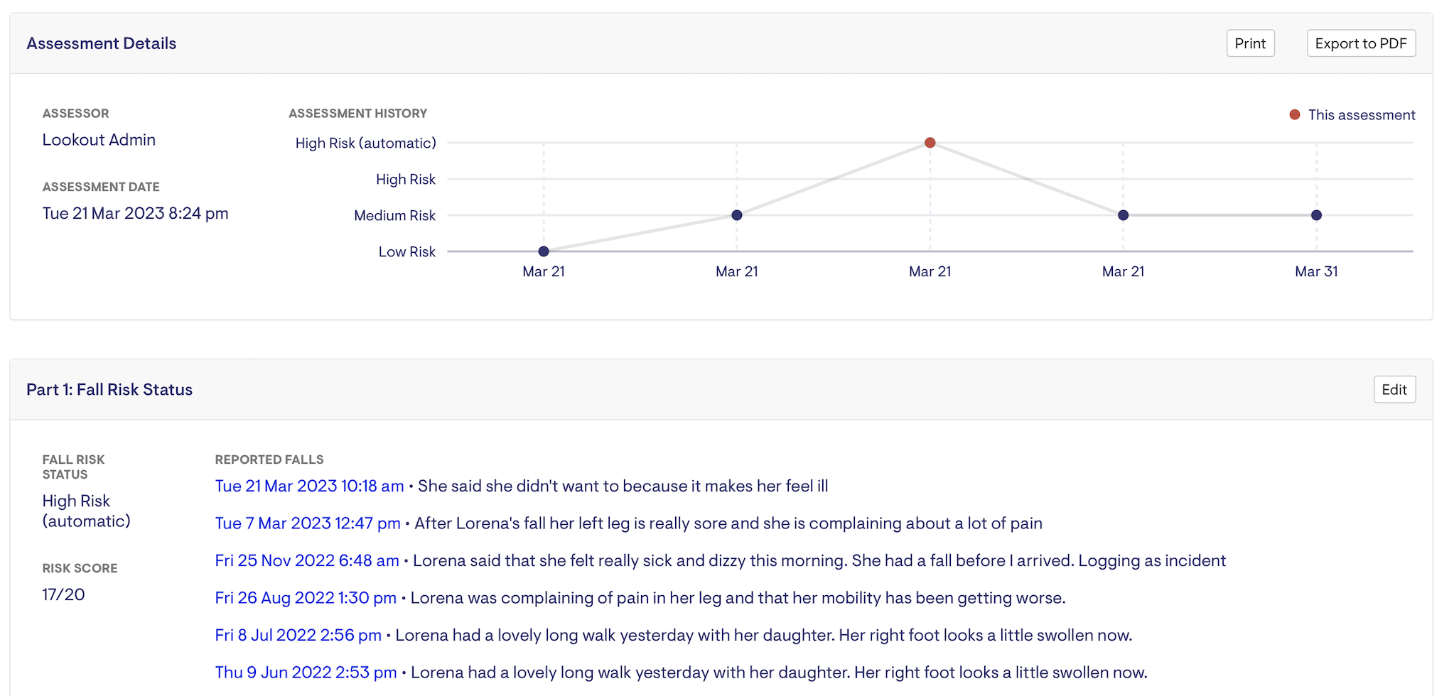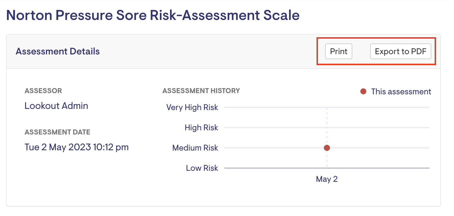 You have the option to either print or save assessments as a PDF directly from the ticket.