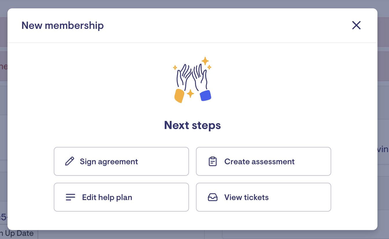 After creating a new membership, you will see the option to "Create assessment" in the action panel when using the Focal Assessment add-on.