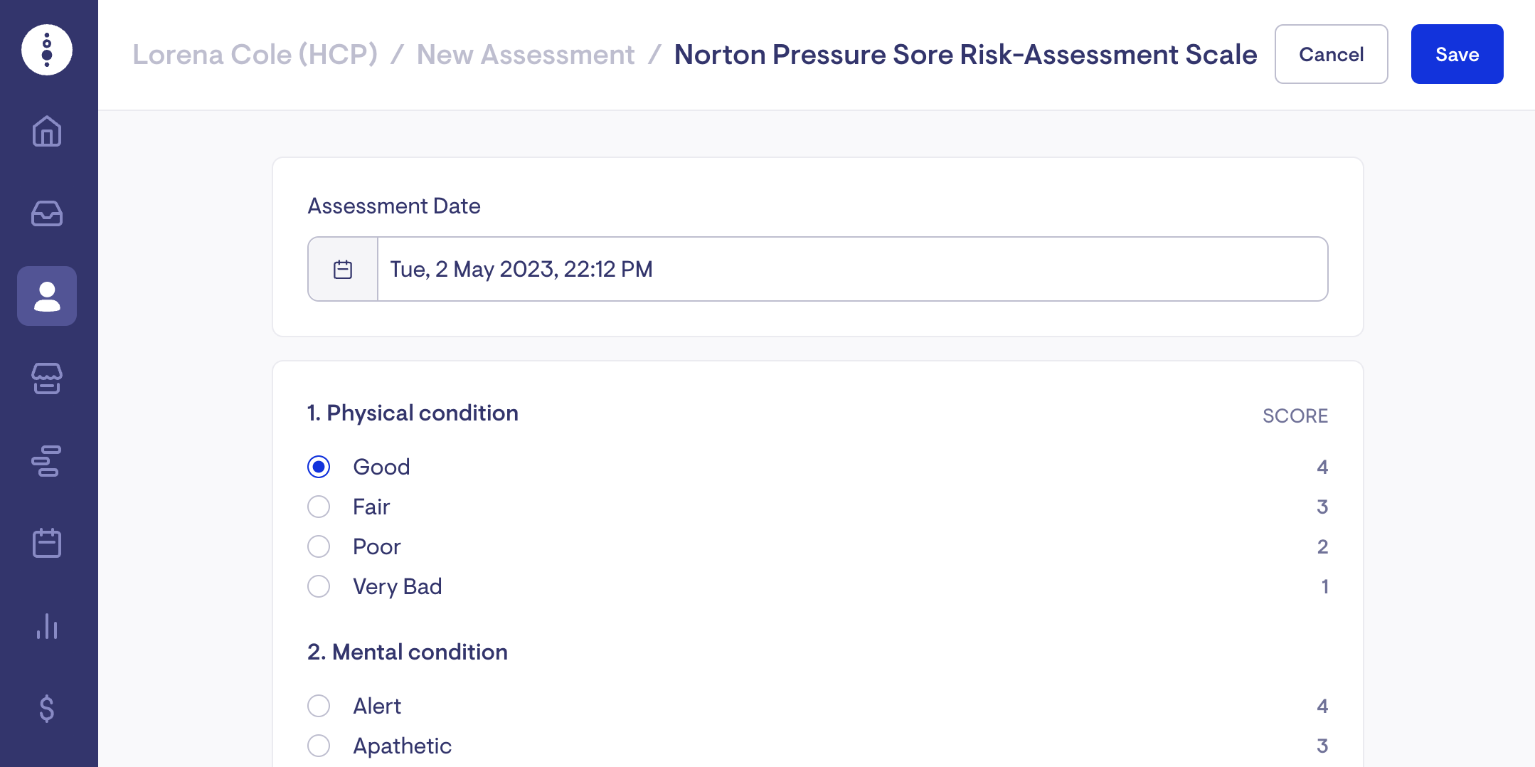 💬 The Focal Assessment add-on is required to complete a Norton Pressure Sore Risk-Assessment.