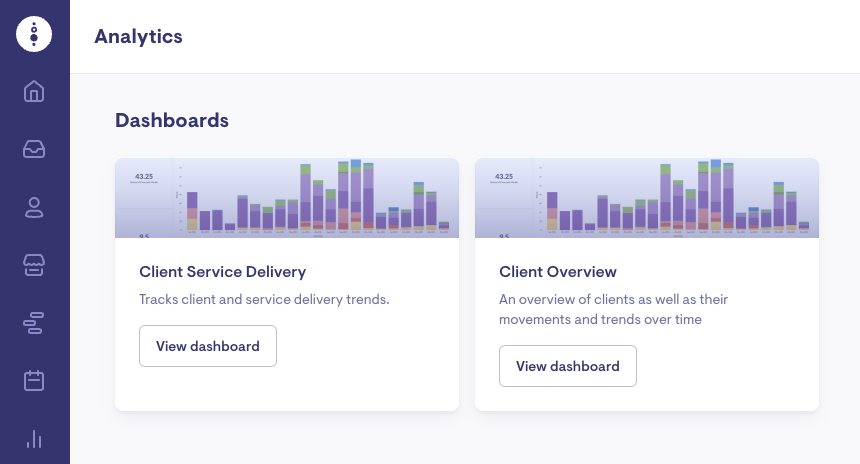 Each dashboard will show a collection of cards displaying data in different forms - tables, charts and metrics.
