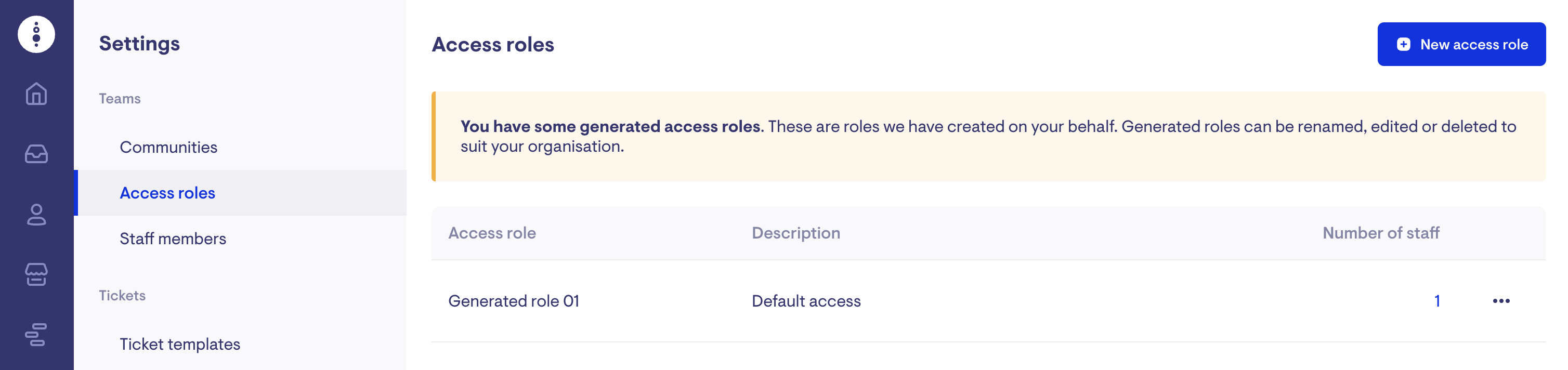 To include a Dashboard in an Access Role, go to the Settings section and select 'Access Roles'.