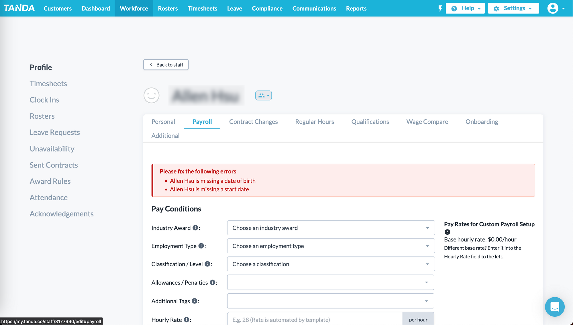 Then head to Tanda, find the corresponding profile, and click the “Payroll” tab.