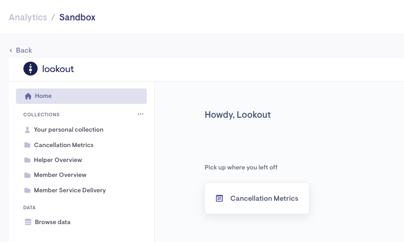 Lookout Analytics is powered by Metabase, a business intelligence and analytics tool.
