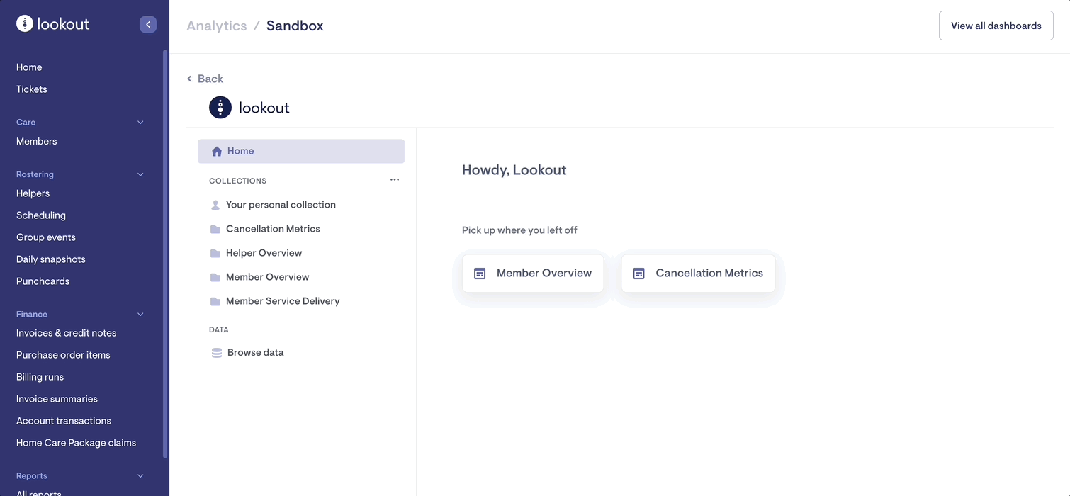 If you have prior experience in constructing reports through a Business Intelligence tool, then Custom Dashboards would be the suitable choice for you. Lookout can offer guidance on data models to facilitate the process.