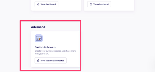 To access Analytics Custom Dashboards, click the 'Analytics' button in the navigation menu. The Analytics page will display a selection of available dashboards to explore. Select 'Custom Dashboards'.